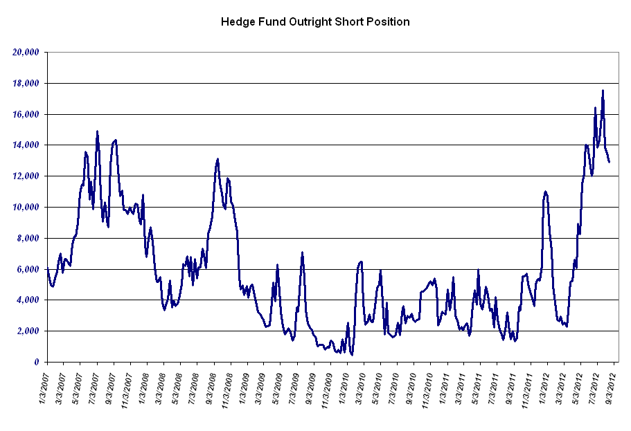 Note that hedge funds while remaining net longs, had also begun playing silver from the short side as the European sovereign debt crisis had most investors looking at the slowing economic growth environment as one in which to short both copper and silver. Yesterday's change of wording in the FOMC Statement sent shock waves through the shorts who ran like hell setting the stage for a signficant amount of technically related buying in today's session which commenced in Asian trade last evening.