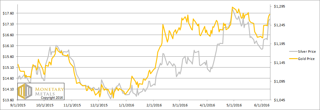 The price of gold bumped up thirty bucks, and that of silver about one buck. Is this liftoff—when the dollar falls sharply, and the price of each metal in dollar terms skyrockets? Is this the denoument when the gold bug does not get rich, because although his net worth measured in dollar is massively up, the dollar is down in equal measure?